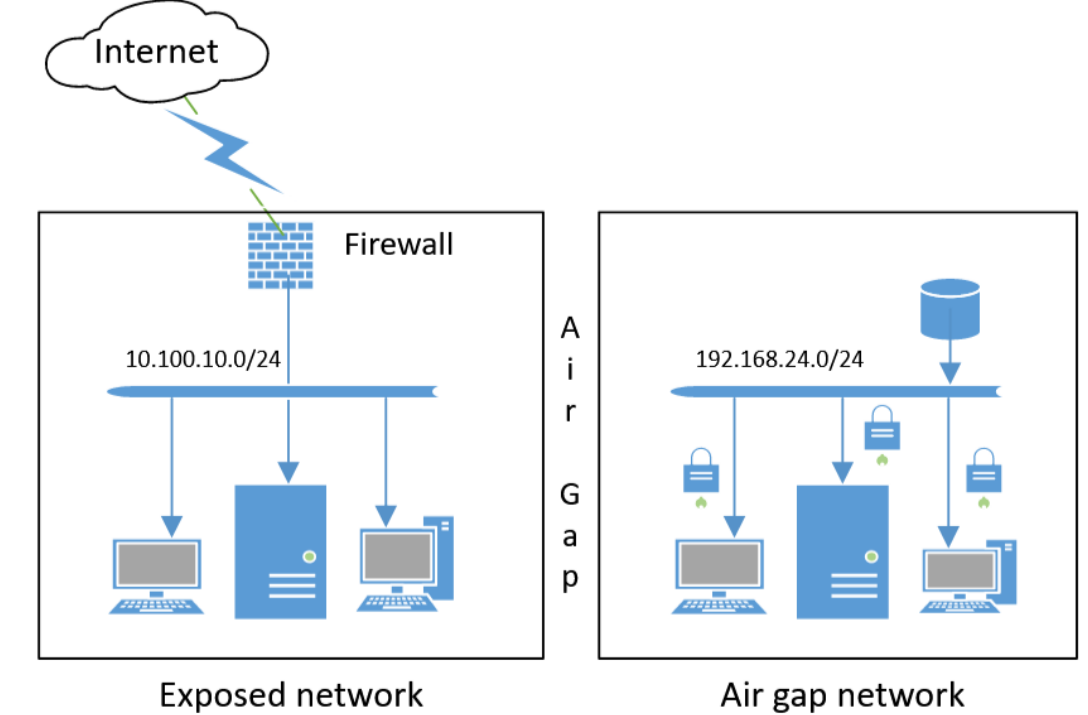 Image source- https://en.wikipedia.org/wiki/Air_gap_(networking)#/media/File:Air_gap_network.png
